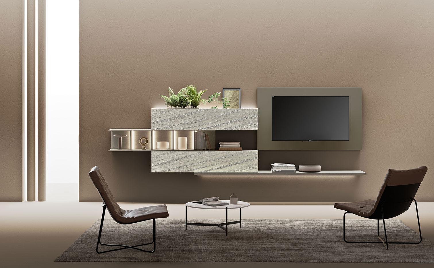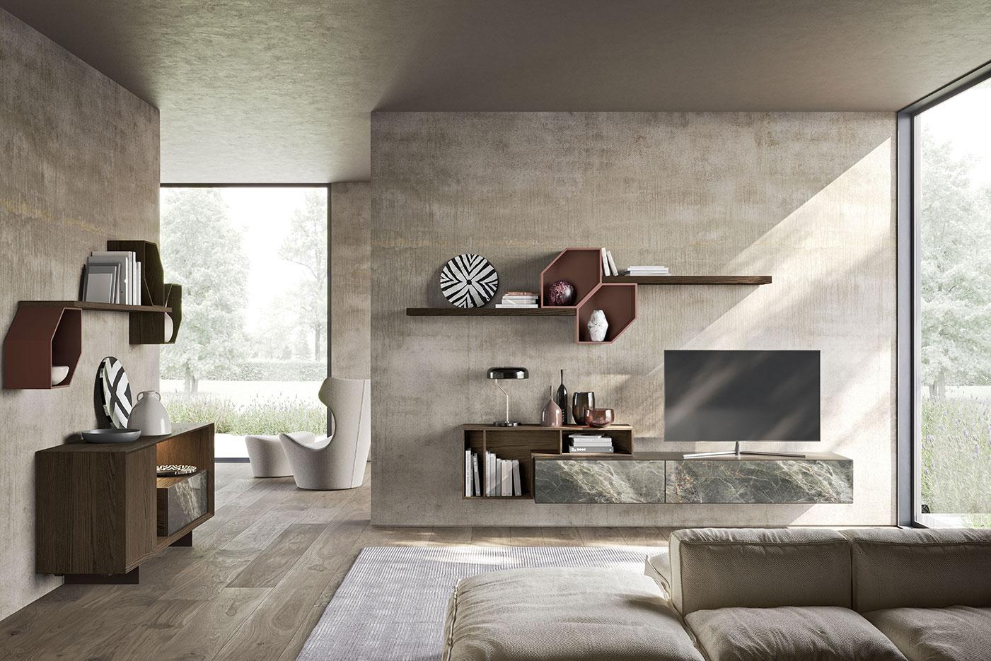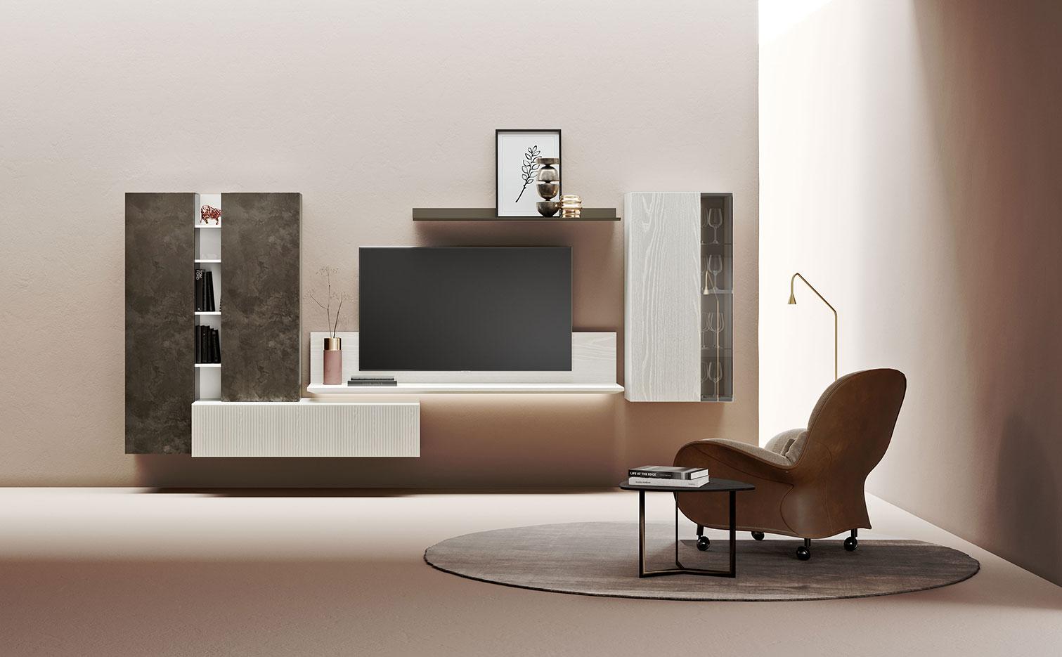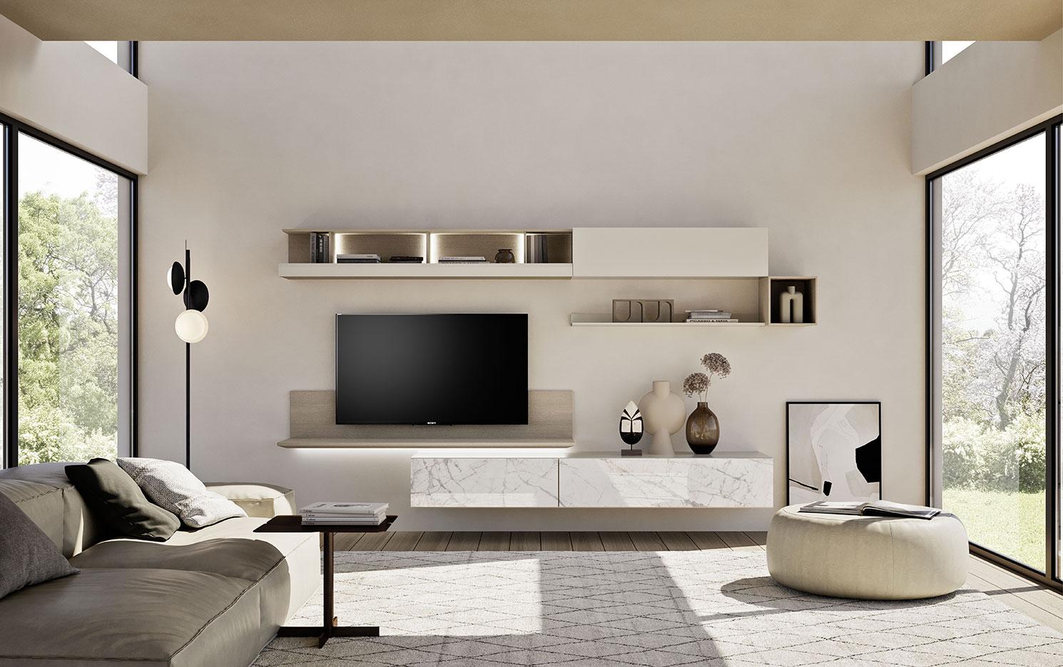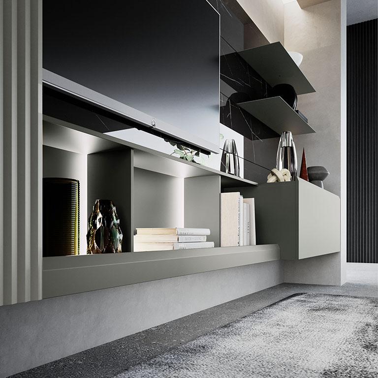 Dalle pareti attrezzate ai sistemi sospesi, passando per librerie, madie, home office integrati e progetti su misura per piccoli spazi, l’obiettivo è creare un living accogliente, equilibrato e perfettamente adattato al vostro stile di vita.