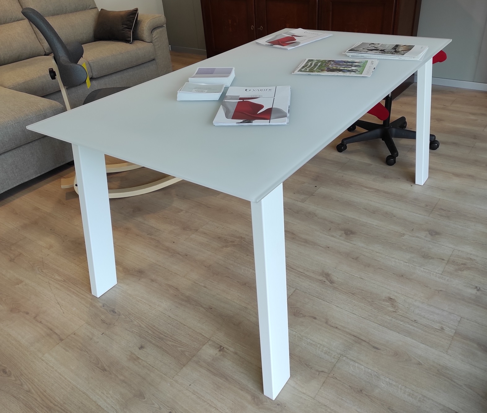 Linee pulite, materiali di qualità e finitura satinata rendono questo tavolo un complemento d’arredo capace di valorizzare spazi moderni e luminosi, combinando eleganza, comfort e funzionalità in un’unica soluzione.
