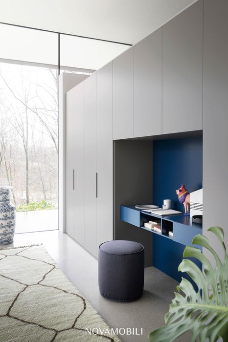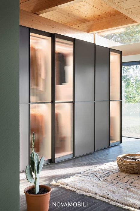 Cabine armadio capienti, perfette anche per mansarde e spazi irregolari, armadi con ante battenti o scorrevoli, finiture in legno, vetro, specchio, laccato opaco o lucido, laminati venati o lisci: ogni dettaglio viene scelto per rispondere a estetica, ergonomia e praticità.
